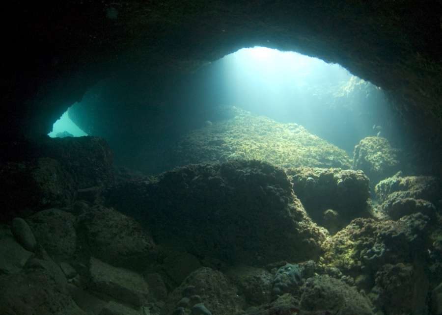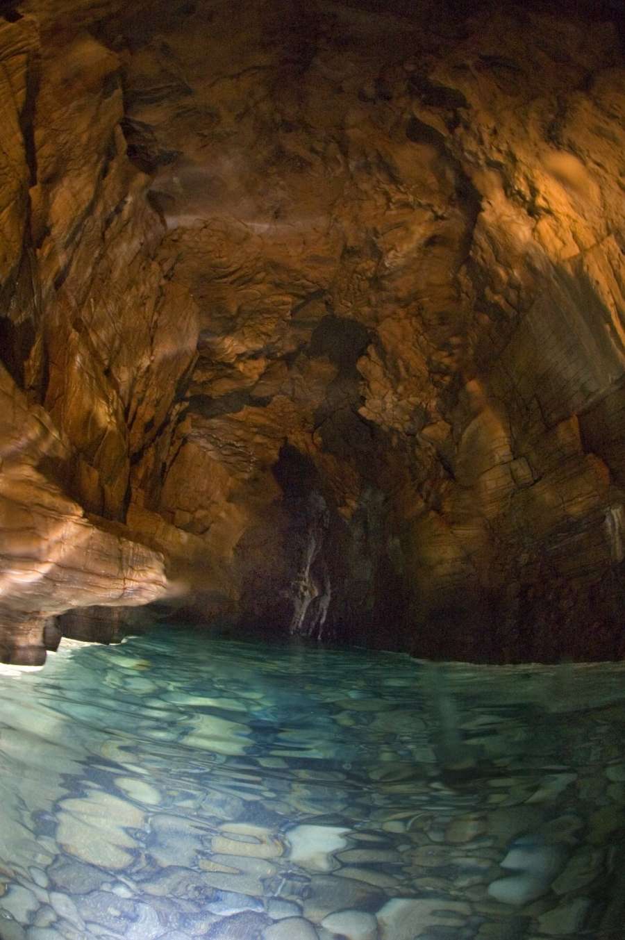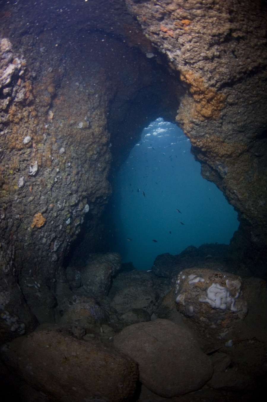 Alla fine della roccia, si entra in un tunnel lungo 20 m alla cui estremità è una grossa grotta dal diametro di 20 m e dall’altezza di 10-15 m attraverso la quale si può uscire sulla terraferma.